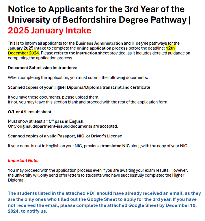 SLIIT City Uni - UOB Top Up 2025 January Intake | Application Deadline: 12th December 2024 | SCU Students